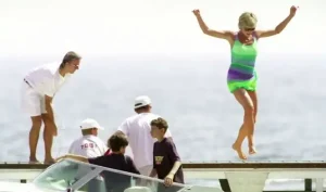 Diana enjoys a holiday with her partner Dodi Rayed. She died mere days after this photo was taken.