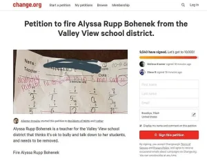 Piland began an internet petition in the hopes of getting the teacher fired so she could no longer abuse her authority over any other small second-grade students because he didn’t want her to get away with her crime against his kid.