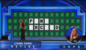 Megan, a married choir director at a high school in California, had to solve a bonus problem consisting of two words that fell under the “Living Thing” category.