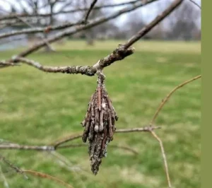 Check your trees regularly for signs of worms, such as bags hanging from the branches.