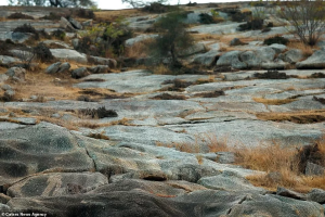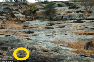 A rocky scene, that looks like it will make for some exciting hiking. However, there is a creature sitting on one of the rocks that you would generally not associate with this kind of terrain. How fast can you find