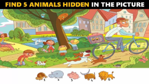 This one is a lot simpler than the previous one. Here, you have to spot the animals listed underneath the picture. There is a total of 5 and you can see what they look like as well.