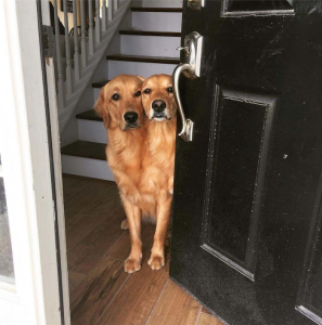 In addition to the headless dog illusion, other optical illusions involving dogs were shared online. One photo depicted a white scruffy dog lying on its side, which initially appeared to resemble a goat with one eye. Another image showed a Labrador retriever running towards the camera, creating the illusion that its owner, standing in the background, was miniature and riding on its back. Yet another photo portrayed two enthusiastic retrievers at a door, appearing as if they had merged into a single body at the shoulder.