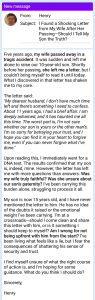 Ultimately, this is not just about the letter or your wife’s actions; it’s also about your relationship with your son. Encouraging an open dialogue can strengthen your bond and help him feel secure in knowing that he can talk to you about anything, even difficult subjects. The trust that you build now will serve you both as you navigate life’s challenges together.