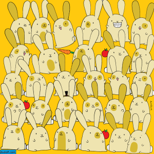 Artist Gergerly Dudas is known for crafting visually captivating and intricate brain teasers. In one of his drawings, every bunny is paired except for one. Can you spot the odd one out?