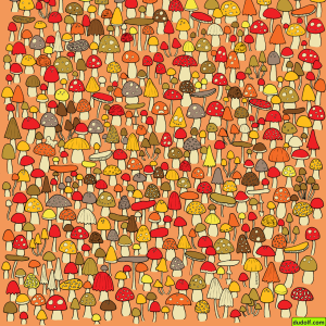 Take a closer look amidst the fungi in this drawing by Gergely Dudas. Can you find the elusive mouse?