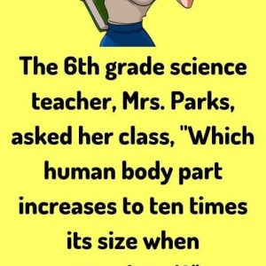 The 6th grade science teacher, Mrs. Parks, asked her class, “Which human body part increases to ten times its size when stimulated?” No one answered until little…