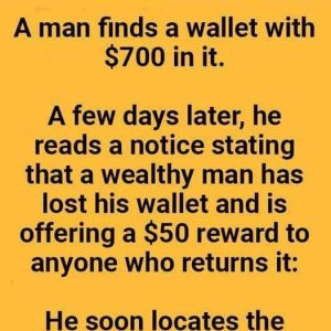 A man finds a wallet with $700 inside. A few days later, he sees a notice from a rich man who lost his wallet and is offering…