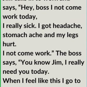 Jim calls in to work and says, “Hey, boss I not come work today, I really sick. I got headache, stomach ache and my legs hurt. I…