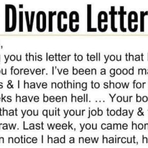 THE BEST DIVORCE LETTER EVER! Dear Wife, I’m keeping in touch with you this letter to let you know