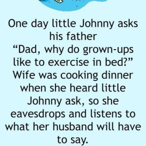 One day little Johnny asks his father “Dad, why do grown-ups like to exercise in bed?” Wife was cooking dinner when she heard little Johnny ask, so…