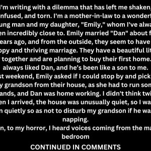 I’m writing with a dilemma that has left me shaken, confused, and torn. I’m a mother-in-law to a wonderful young man and my daughter, “Emily,” whom I’ve…